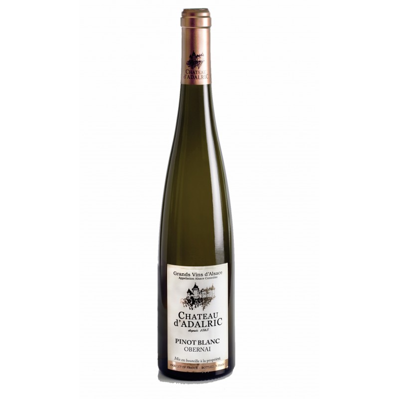 Le Pinot Blanc cuvée "Château d'Adalric" met en valeur les notes aromatiques spécifiques de ce grand cépage alsacien. Fraicheur et vivacité printanière viennent exacerber les notes aromatiques fruitées et florales dans un ensemble rond et harmonieux. À déguster sur les produits de la mer ou l'inévitable Choucroute d'Alsace.